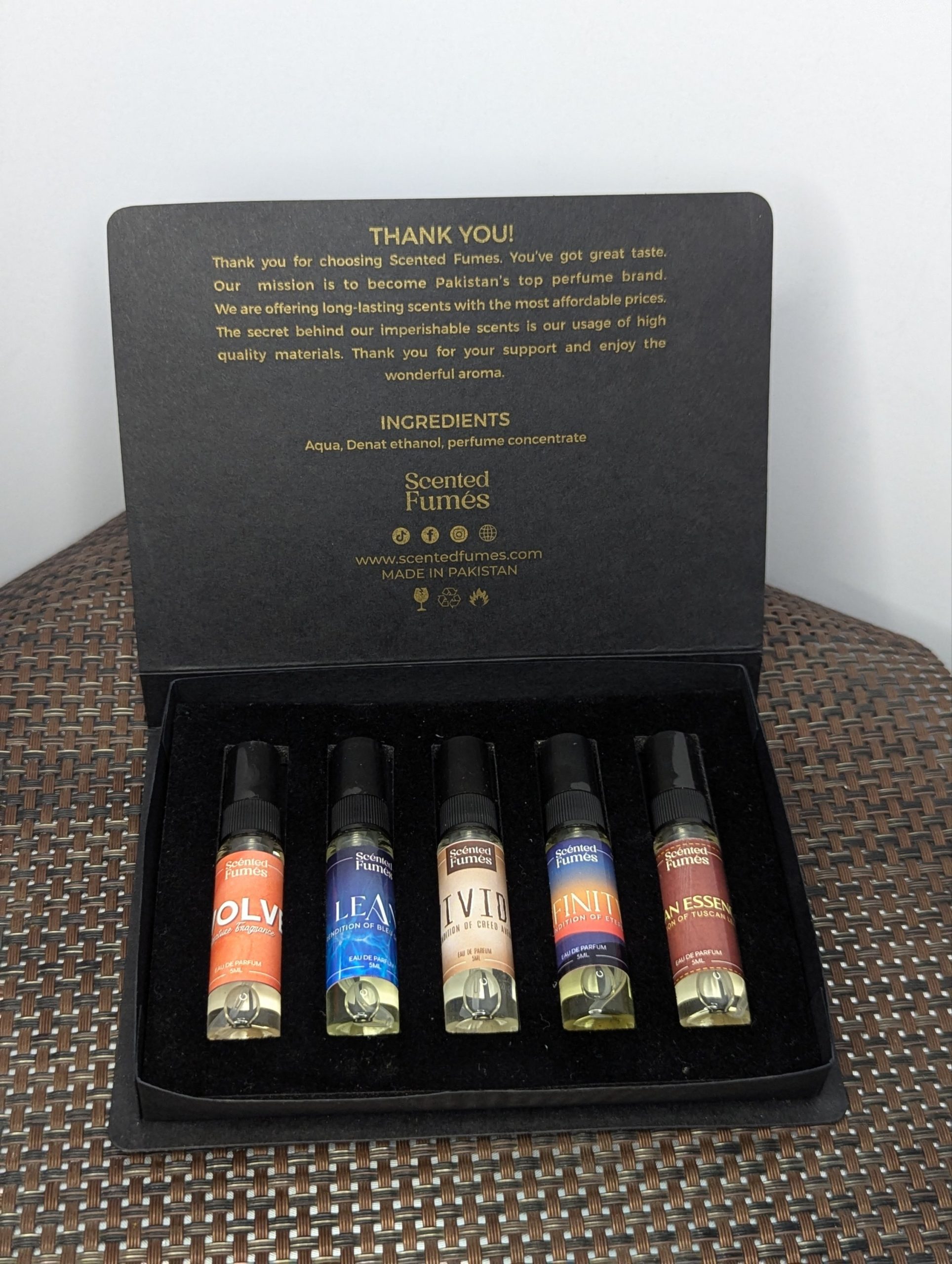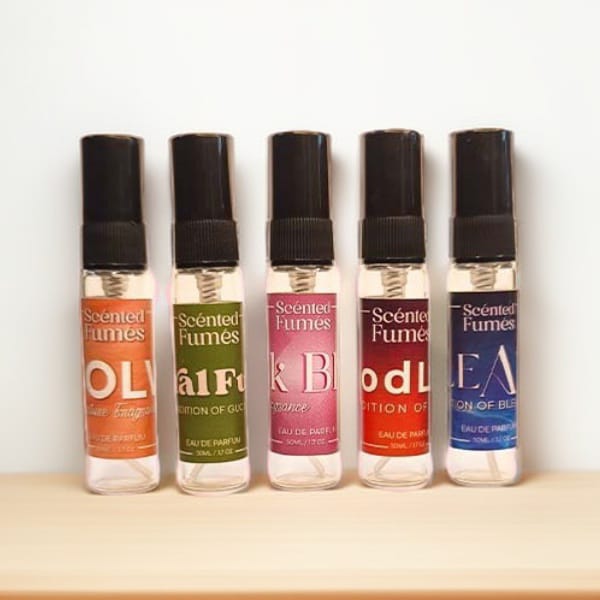 Crisp – Rendition of Cool water, Entice – Rendition of Good Girl, Everlast – Rendition of Dunhill Desire Blue, Evolve – Our Signature Scent, Floral Fume – Rendition of Gucci Flora, Florentine – Rendition of Coco Mademoiselle, Good Lord – Rendition of Hugo Boss, Infinity – Rendition of Eternity, Itallian Essence – Rendtion of Tuscan Leather, Lean – Rendition of Bleu de chanel, Loaded – Rendition of 1 million, Magic Spell – Rendition of Victoria, Oud – Our Signature Scent, Pink Bling – Our Signature Scent, Prestige – Rendition of Nishane Hacivate, Serenity – Rendition of Baccarat Rouge 540, Suave – Rendition of Dior Sauvage, Tempt – Rendition of Issey Miyake, Vivid – Rendition of Creed Aventus |